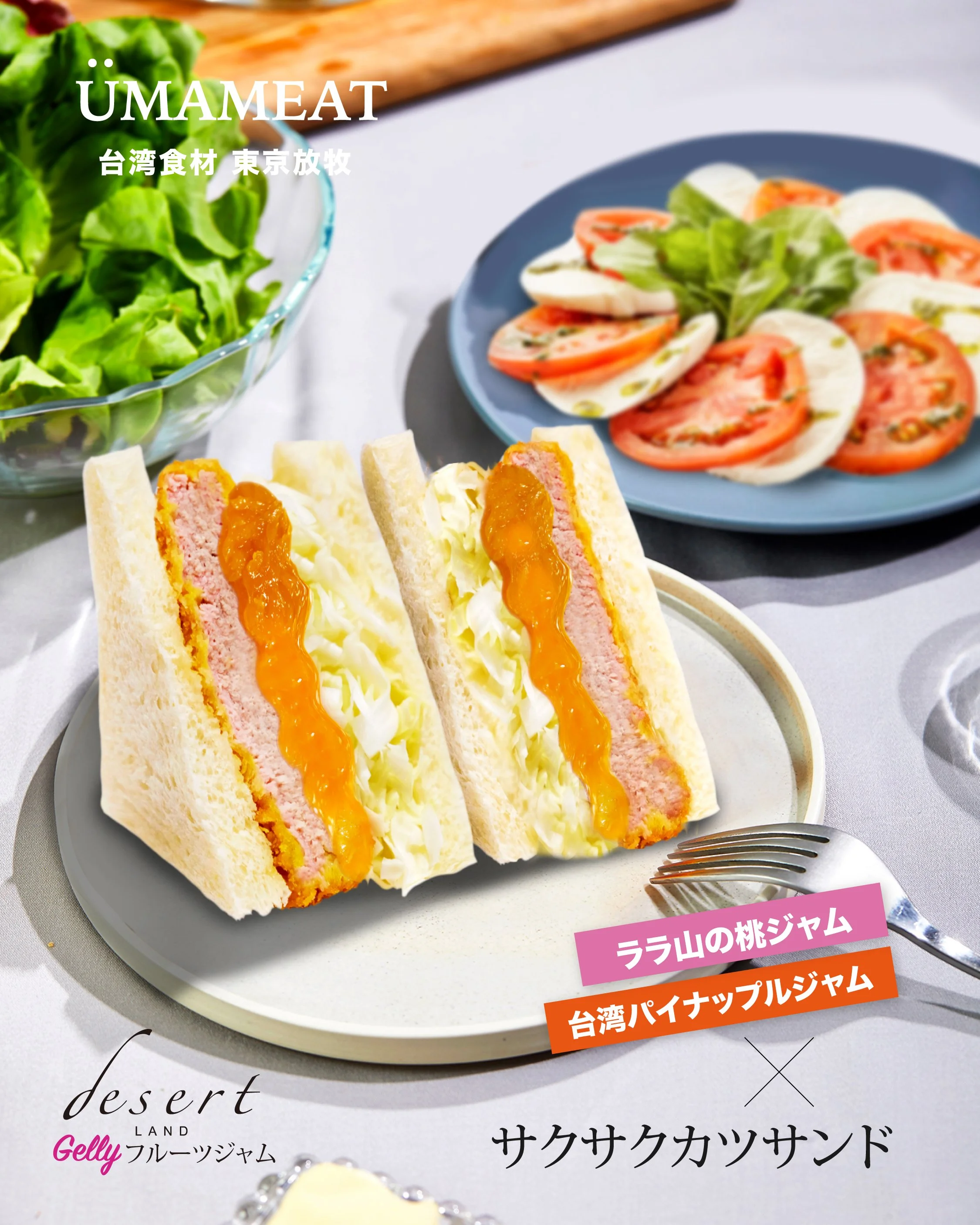 在吐司麵包中夾入炸豬排與高麗菜絲,切下神聖一刀的霎那,肉汁香氣撲鼻,最後在上面淋上酸甜果醬,就是台灣果物與和豚完美結合的「サクサクカツサンド」。
