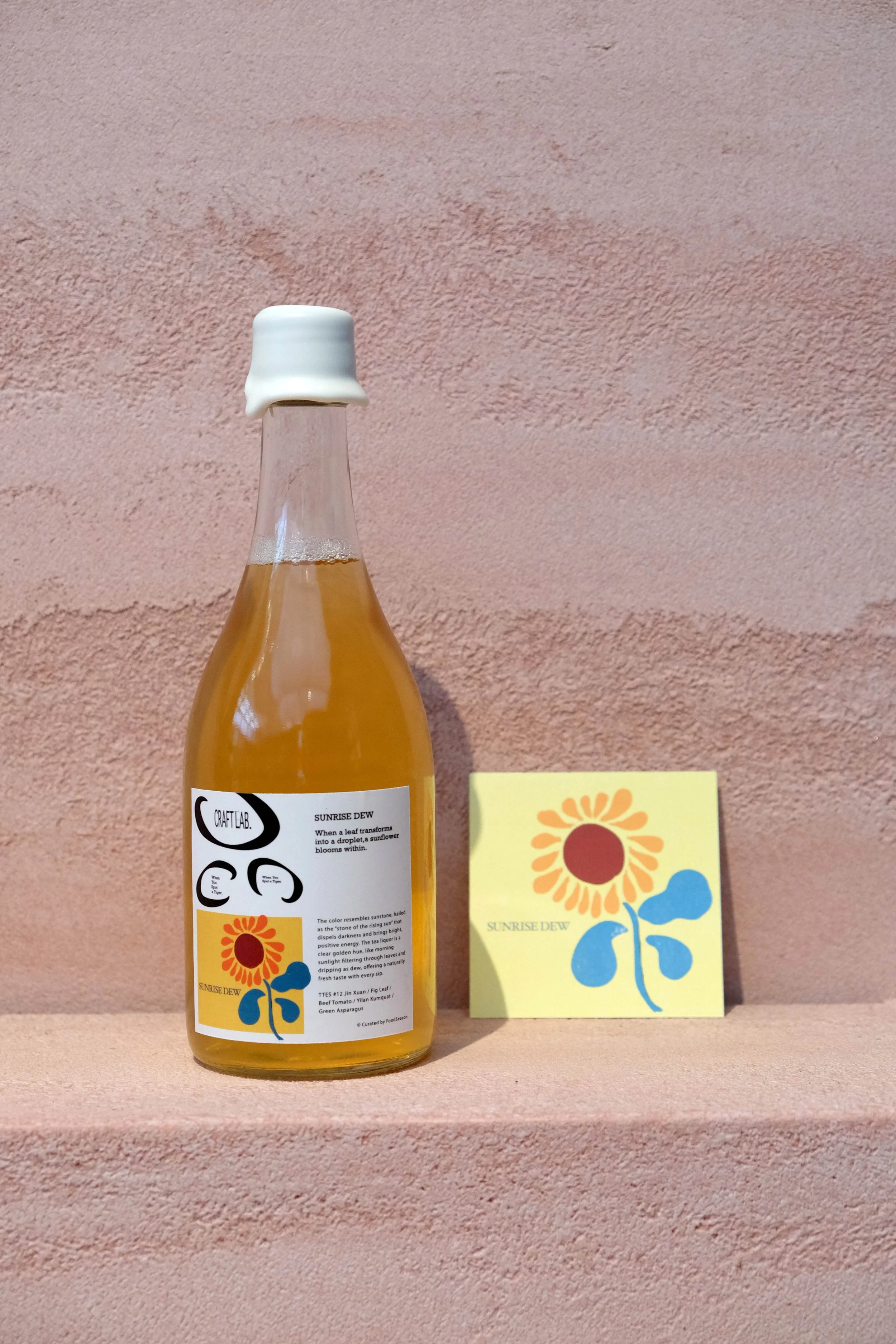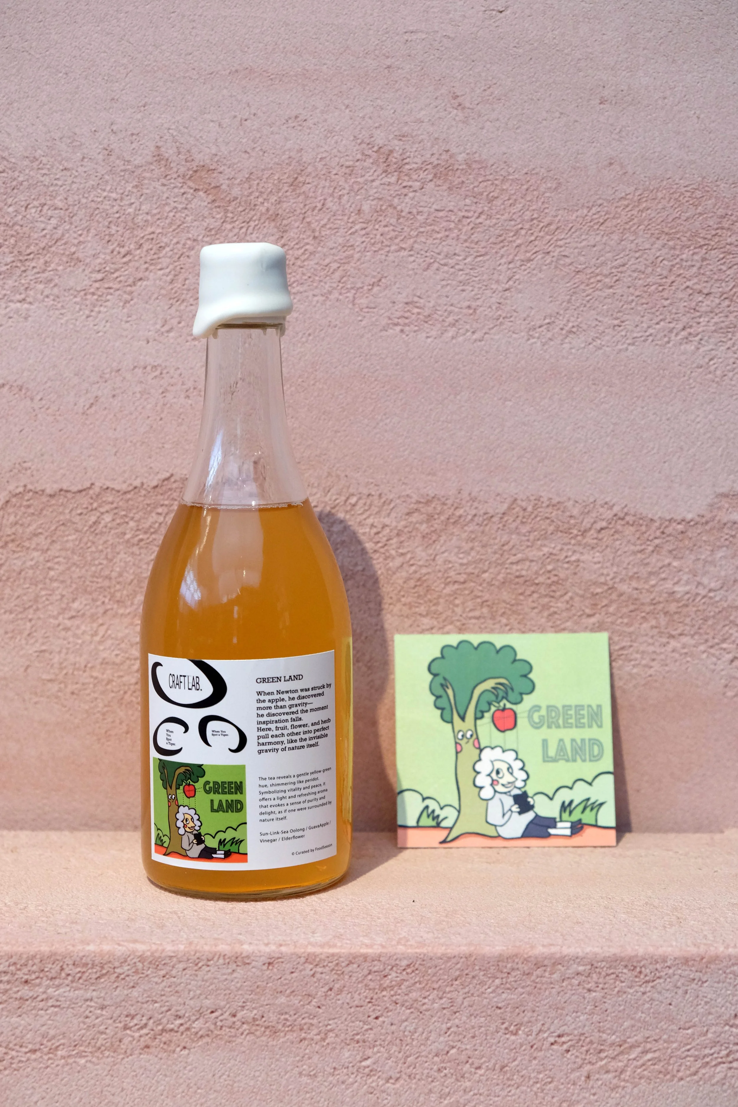 Sun-Link-Sea Oolong has a natural green hue, paired with guava for its fresh, herbal aroma. Anaerobically fermented apple vinegar adds a bright fruit acidity, while elderflower syrup enhances the fragrance. The interplay of fruit, flower, and herb ingredients forms a perfectly balanced triangle of refreshing harmony.